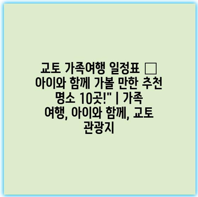 교토는 역사와 자연이 조화를 이루는 매력적인 도시입니다. 아이와 함께하는 여행은 더욱 특별할 수 있는데, 다양한 명소를 통해 재미와 배움을 동시에 느낄 수 있습니다.