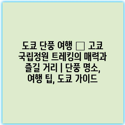 도쿄 단풍 여행 – 고쿄 국립정원 트레킹의 매력과 즐길 거리 | 단풍 명소, 여행 팁, 도쿄 가이드