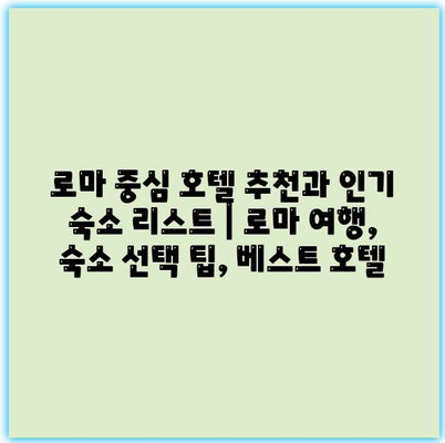 로마 중심 호텔 추천과 인기 숙소 리스트 | 로마 여행, 숙소 선택 팁, 베스트 호텔