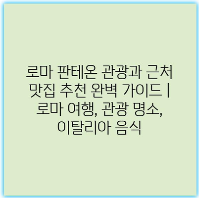 로마 여행을 더욱 특별하게 만드는 방법은 바로 ‘판테온’과 그 주변의 맛집을 경험하는 것입니다.