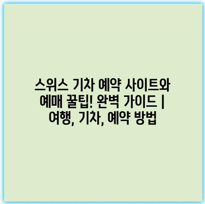 스위스 여행에서 기차는 꼭 경험해야 할 교통 수단입니다. 아름다운 경치와 함께 편리한 이동 방법으로, 다양한 노선과 편리한 스케줄을 제공합니다. 스위스 기차를 예약하는 방법에는 여러 가지가 있으며, 그중에서도 주목할 만한 웹사이트들이 있습니다.