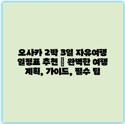 오사카 2박 3일 자유여행 일정표 추천 | 완벽한 여행 계획, 가이드, 필수 팁