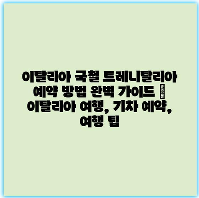 이탈리아 국철 트레니탈리아 예약 방법 완벽 가이드 | 이탈리아 여행, 기차 예약, 여행 팁