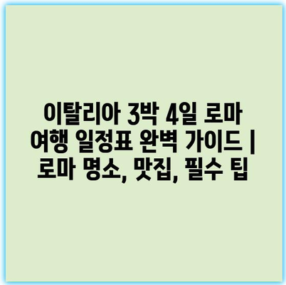이탈리아 3박 4일 로마 여행 일정표 완벽 가이드 | 로마 명소, 맛집, 필수 팁 에 대해 자주 묻는 질문 TOP 5