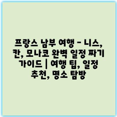 프랑스 남부 여행 – 니스, 칸, 모나코 완벽 일정 짜기 가이드 | 여행 팁, 일정 추천, 명소 탐방은 여러분의 다음 여행을 더욱 특별하게 만들어 줄 것입니다.