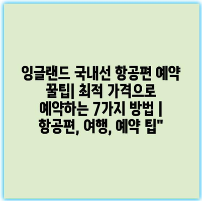 잉글랜드 국내선 항공편 예약 꿀팁| 최적 가격으로 예약하는 7가지 방법 | 항공편, 여행, 예약 팁”