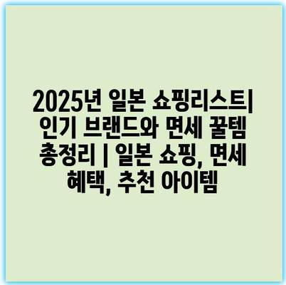 2025년 일본 쇼핑리스트| 인기 브랜드와 면세 꿀템 총정리 | 일본 쇼핑, 면세 혜택, 추천 아이템 에 대해 자주 묻는 질문 TOP 5