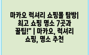 마카오 럭셔리 쇼핑몰 탐방| 최고 쇼핑 명소 7곳과 꿀팁! 마카오는 럭셔리 쇼핑을 즐기기에 적합한 도시입니다. 화려한 카지노와 함께 고급 브랜드의 쇼핑을 경험할 수 있는 최적의 장소입니다. 이 글에서는 마카오의 대표적인 …