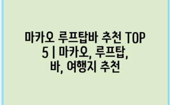 마카오 루프탑바 추천 TOP 5 | 마카오, 루프탑, 바, 여행지 추천 마카오는 다양한 매력을 지닌 도시로, 멋진 경치를 즐길 수 있는 루프탑바들이 많습니다. 이곳에서는 환상적인 야경을 배경으로 특별한 칵테일을 즐기며 …