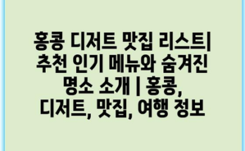 홍콩 디저트 맛집 리스트| 추천 인기 메뉴와 숨겨진 명소 소개 | 홍콩, 디저트, 맛집, 여행 정보 Read More
