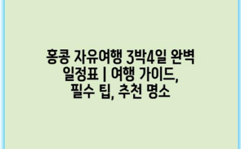 홍콩 자유여행 3박4일 완벽 일정표 | 여행 가이드, 필수 팁, 추천 명소 홍콩은 맛있는 음식과 다채로운 문화, 아름다운 경관으로 가득한 여행지입니다. 이번 포스팅에서는 홍콩에서의 3박4일 일정을 효율적으로 계획할 수 있는 …