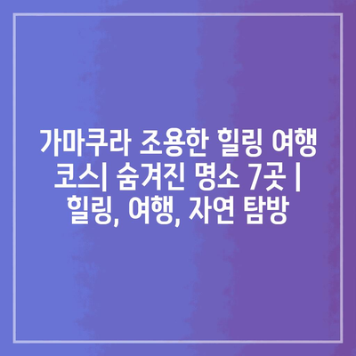 가마쿠라 조용한 힐링 여행 코스| 숨겨진 명소 7곳 | 힐링, 여행, 자연 탐방
