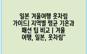 일본 겨울여행 옷차림 가이드| 지역별 평균 기온과 패션 팁 비교 | 겨울 여행, 일본, 옷차림 일본의 겨울은 지역마다 기온 차가 크고, 특히 홋카이도와 오사카의 날씨는 상이합니다. 홋카이도에서는 평균 기온이 영하 …