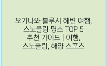 오키나와 블루시 해변 여행, 스노클링 명소 TOP 5 추천 가이드 | 여행, 스노클링, 해양 스포츠 오키나와는 일본의 아름다운 섬으로, 블루색의 해변과 맑은 바다로 유명합니다. 이곳에서는 스노클링을 통해 다양한 해양 생물과 …