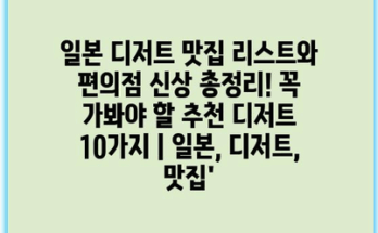 일본 디저트 맛집 리스트와 편의점 신상 총정리! 꼭 가봐야 할 추천 디저트 10가지 | 일본, 디저트, 맛집 일본의 디저트는 그 다양성과 맛으로 유명합니다. 특히, 일본에서만 경험할 수 있는 특별한 디저트들은 …