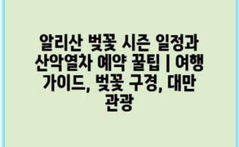 알리산의 벚꽃 시즌은 매년 3월 중순부터 4월 초까지 이루어집니다. 이 시기에는 형형색색의 벚꽃이 만개하며, 정말 아름다운 풍경을 자아냅니다. 벚꽃을 제대로 즐기기 위해서는 미리 산악열차 예약을 하는 것이 중요합니다. 특히 주말이나 …