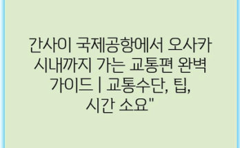 간사이 국제공항에서 오사카 시내까지 가는 교통편 완벽 가이드 | 교통수단, 팁, 시간 소요”