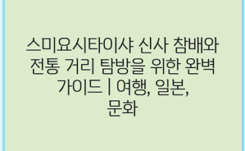 스미요시타이샤 신사 참배와 전통 거리 탐방을 위한 완벽 가이드 | 여행, 일본, 문화 오사카의 스미요시타이샤 신사는 아름다운 풍경과 역사적인 의미로 많은 관광객을 끌어들이는 장소입니다. 이 신사는 일본의 고유한 신토 양식으로 …