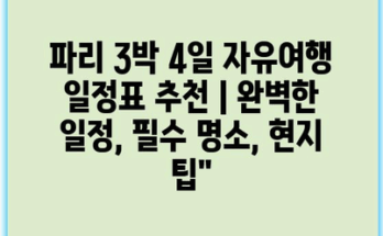 파리 3박 4일 자유여행 일정표 추천 | 완벽한 일정, 필수 명소, 현지 팁 프랑스를 대표하는 낭만의 도시, 파리에서의 3박 4일은 잊지 못할 경험이 될 것입니다. 이번 여행에서 꼭 가봐야 할 …